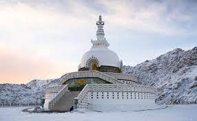 Shanti Stupa is also known as the Vishwa Shanti Stupa, situated at a height of 4267 meters overlooking the Leh city, the Shanti stupa gives a panoramic view of surrounding snow capped mountains. It is at a distance of about 5 km drive able road from the Leh city or one can climb 500 steps to reach here. It is an important place of pilgrimage for Buddhists. The towering stupa is made of marble and there are brilliantly intricate statues of the Lord Buddha here. It is known primarily as being a destination for spirituality and photography.